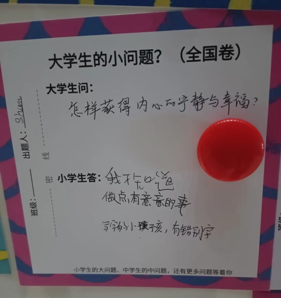 对于背负着巨大内卷压力的大学生而言,孩子们的童真则是最珍贵的“解压阀”。大学生面临学业、就业、未来的多重迷茫,时常感到疲惫与迷失。孩子们简单纯粹的回答——“开心就好”“慢慢来”,却如同一束光,瞬间拨开了成年人心中的迷雾。它提醒大学生,在追求功利的道路上,不应丢失最初的纯粹与热爱。这种返璞归真的力量,让青年学子重新校准了人生的航向。